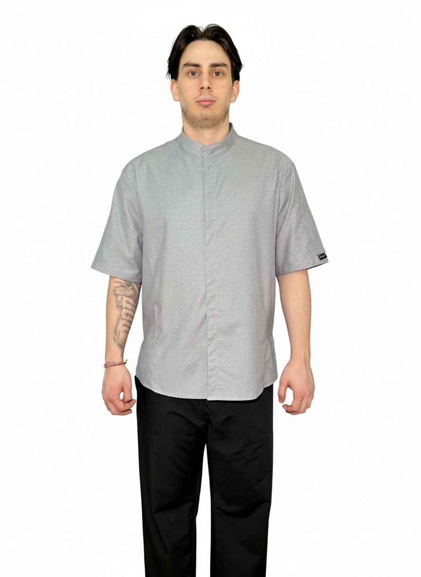 Куртка поварская, короткий рукав, карман на левом рукаве, застежка на кнопках. Ткань 100% хлопок.
