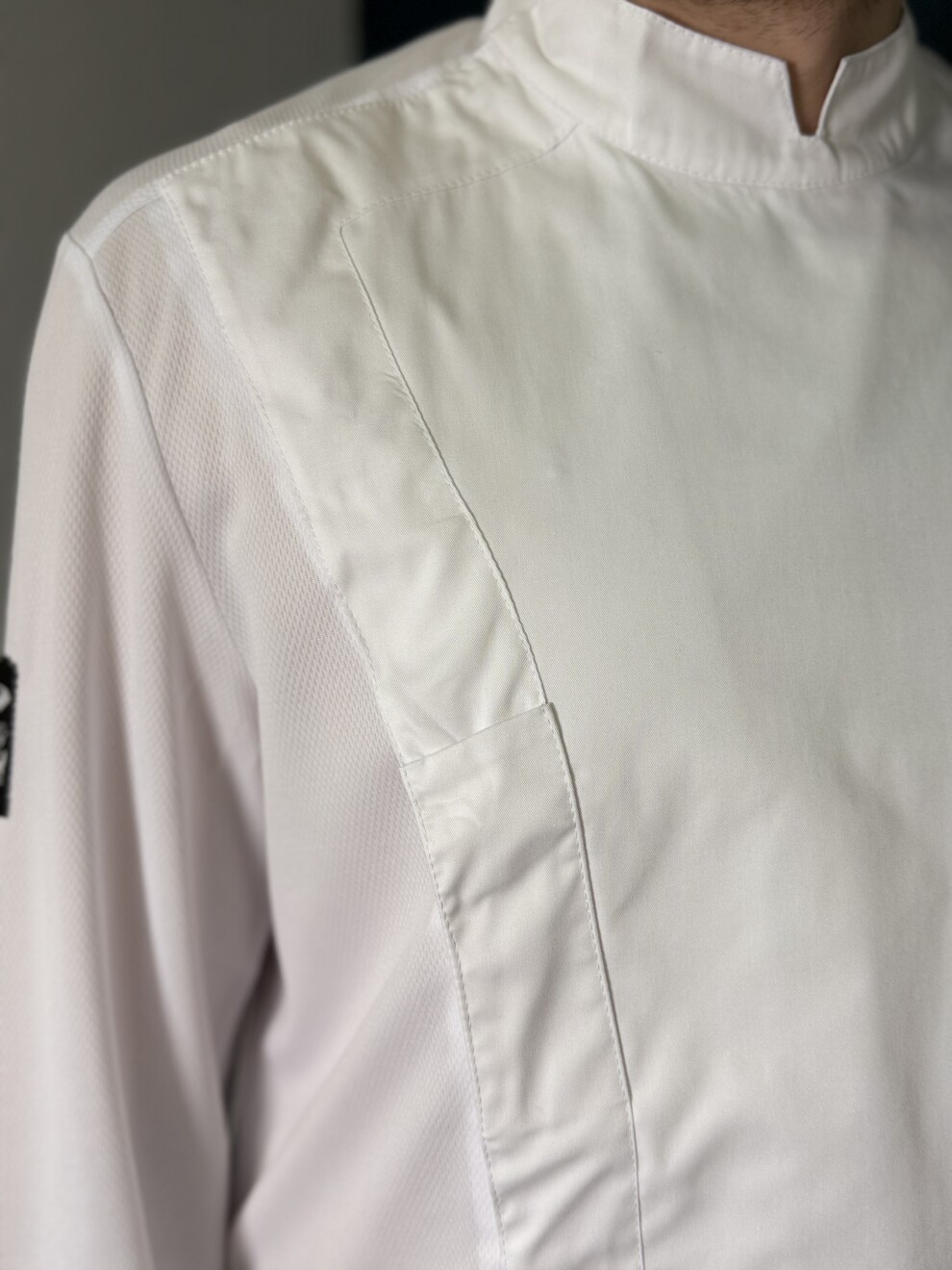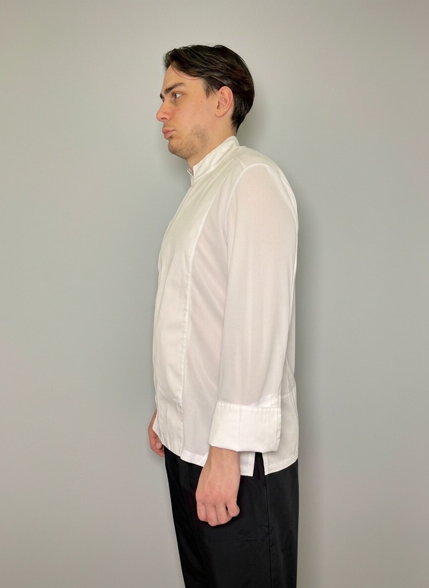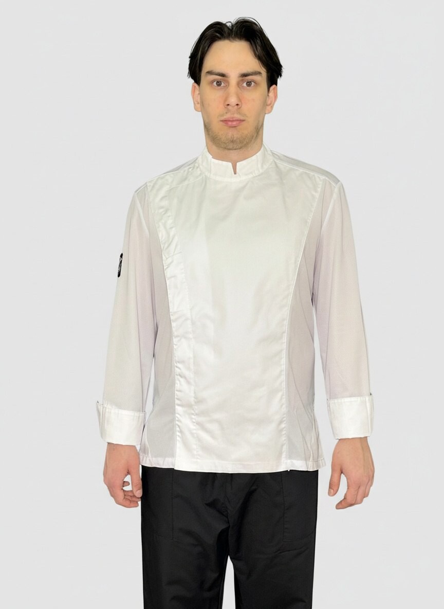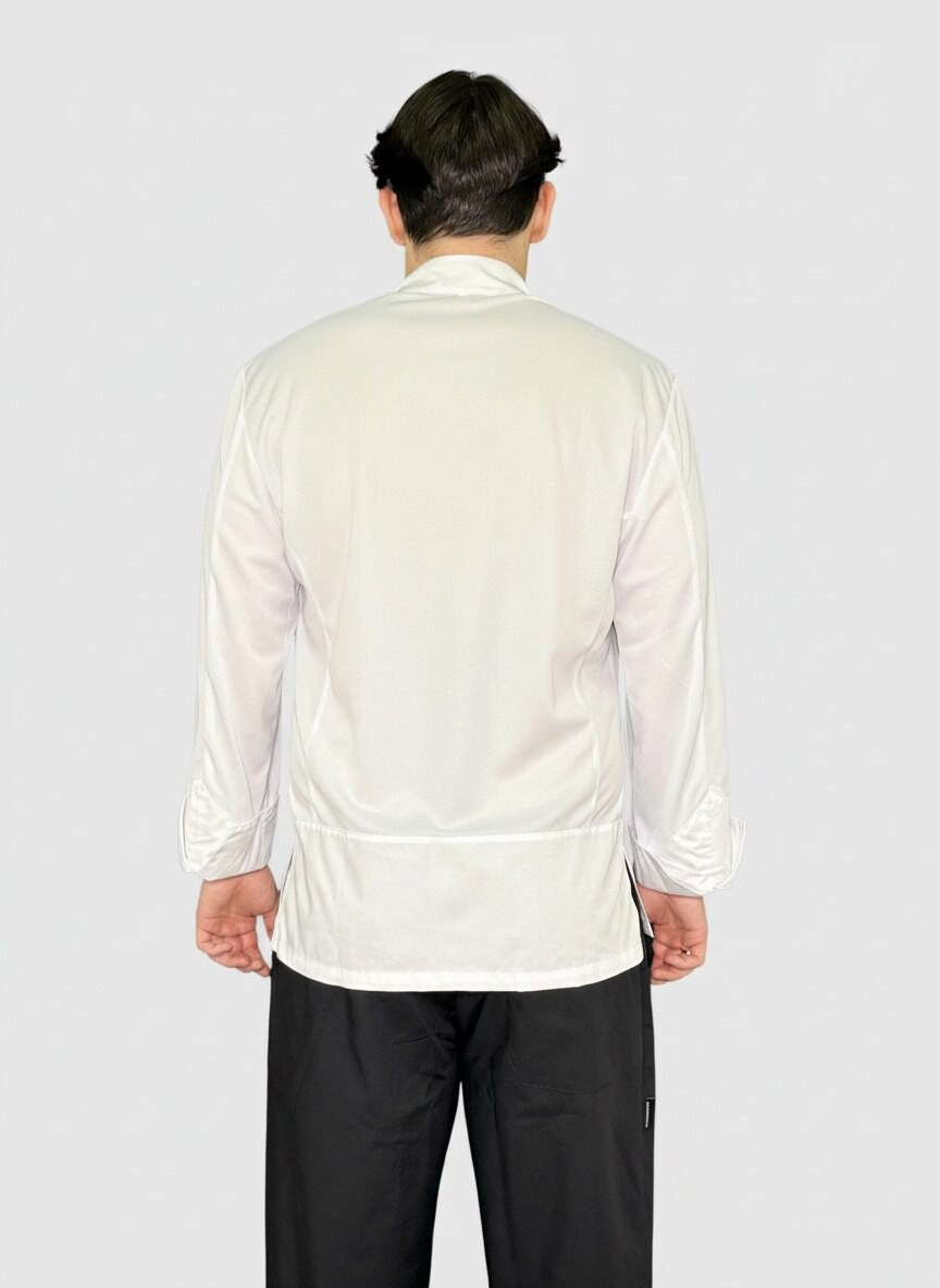 Куртка поварская, длинны рукав, застежка на кнопках, спина и рукава сетка трикотаж.