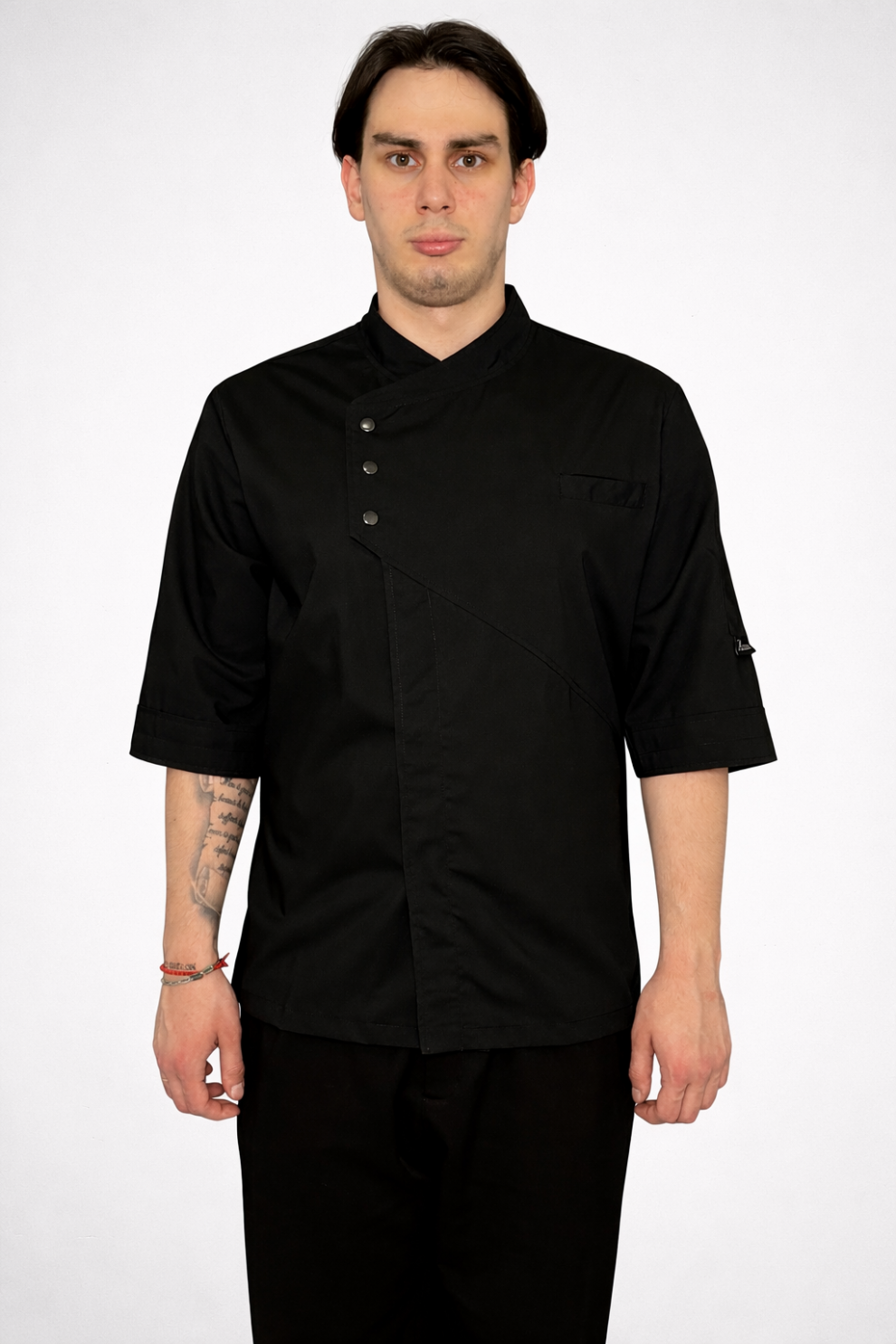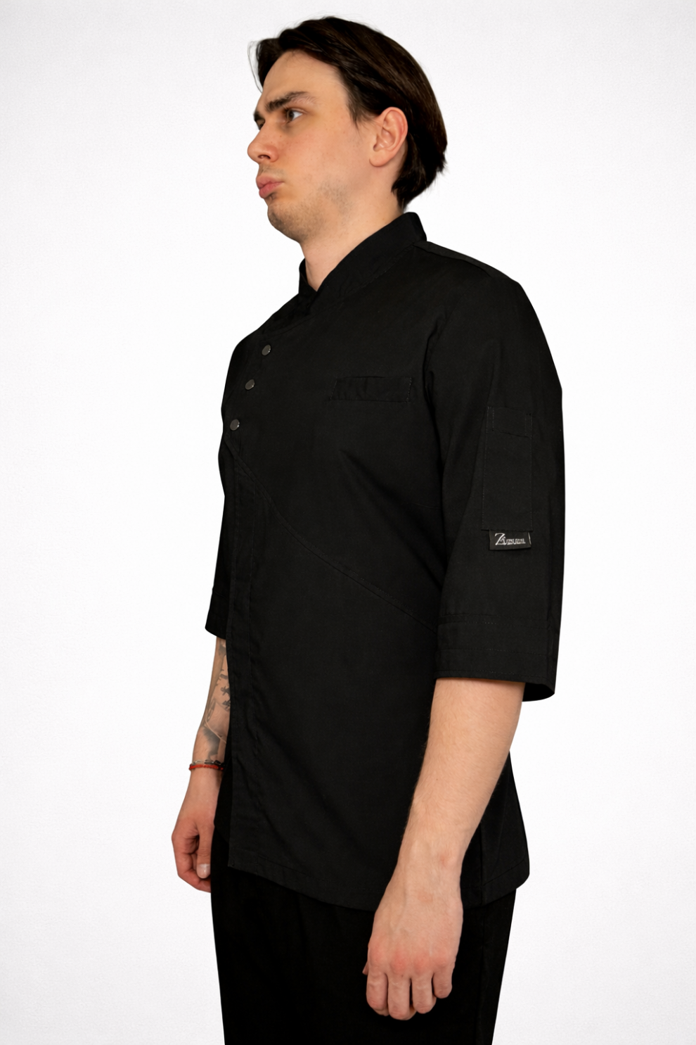 Куртка поварская, рукав 3/4, застежка на кнопках. карман на груди на левом рукаве. Спина трикотажная сетка.
