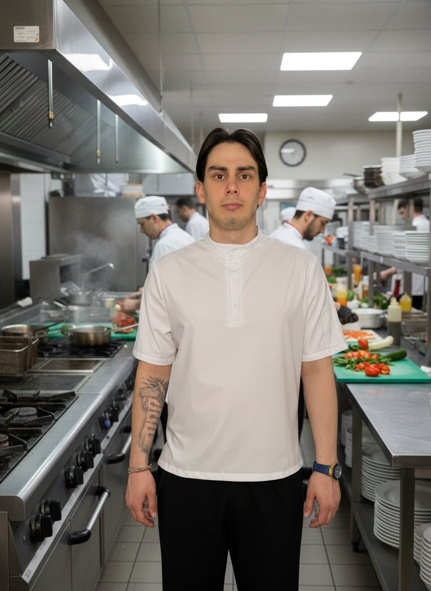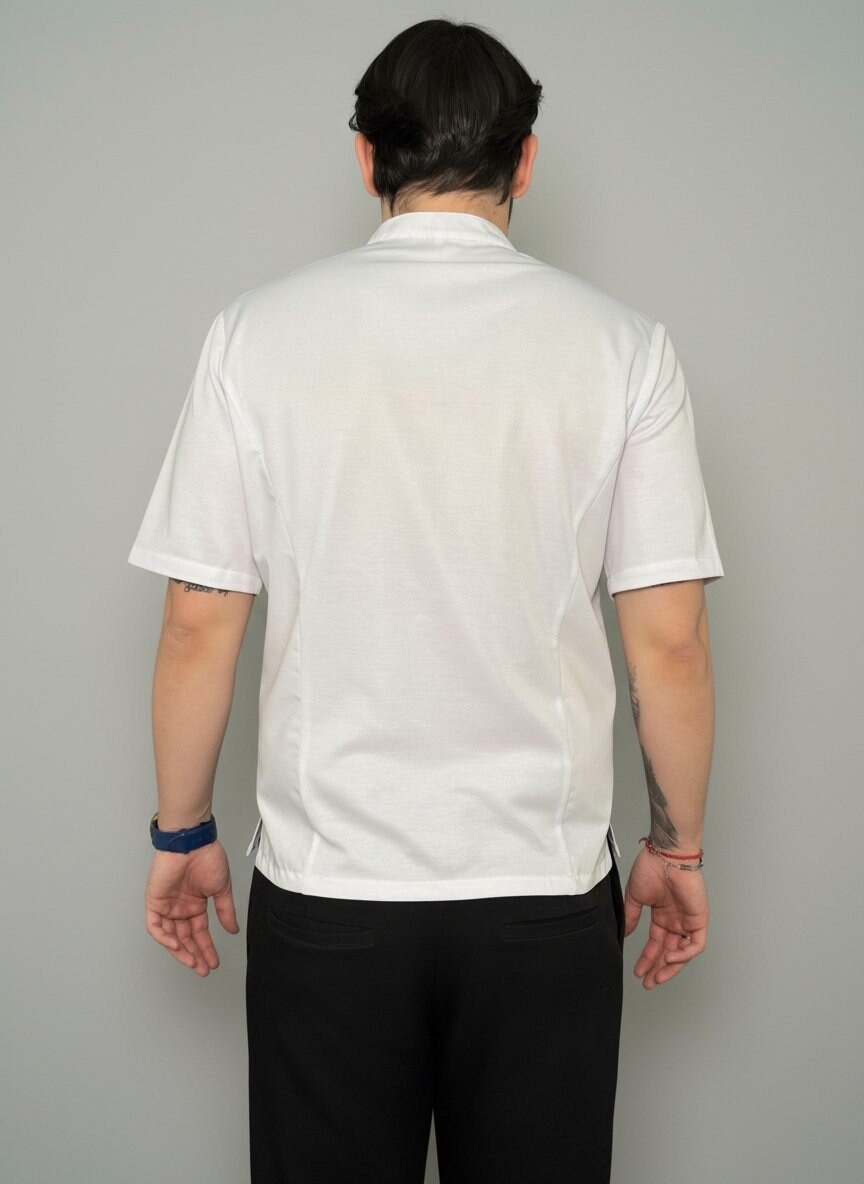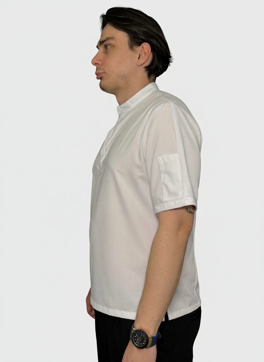 Куртка поварская, короткий рукав, карман на рукаве. Спина и рукава трикотаж. Облегченная ткань.